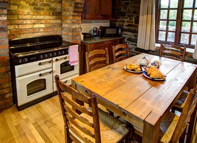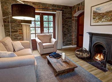 Downstairs Large sitting room with fireplace, dining and kitchen area complete with all mod cons. Couch can be converted to a bed to sleep an additional 2 people. Outside patio with seating for 6.
