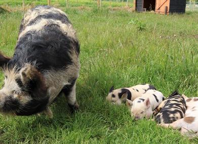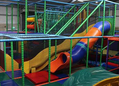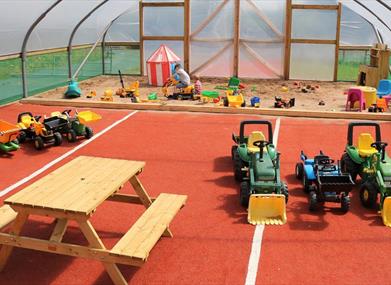 There is an excellent indoor soft play centre open throughout the year catering for babies to 10 year olds. The modern on-site tearoom offers views out over the farm with breakfasts, light lunches, hot and cold drinks and traybakes .There are picnic tables outside if you are visiting the farm outdoor areas and decide to bring a little lunch or snack. Outdoors there are paths around our animal paddocks, our activity tunnel for imaginative play with our large sandpit, wigwams and petting barn.
