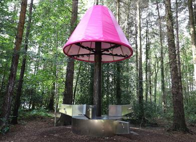 There are also three hand crank mechanisms that have been designed with disability users in mind. The hand cranks can be used by everyone so in total six people can work together to generate the 20 LED lights above them.